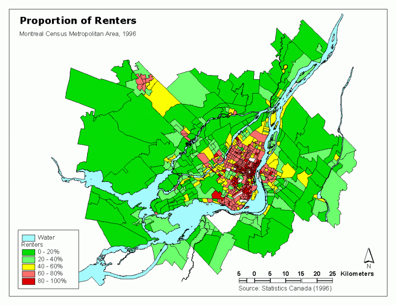 of households, as does the southern downtown section of Montreal. Two