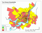 Two person households are more evenly distributed through the CMA, although