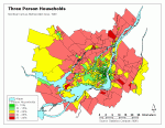 core, but are far more common in the urban fringe than three person households.